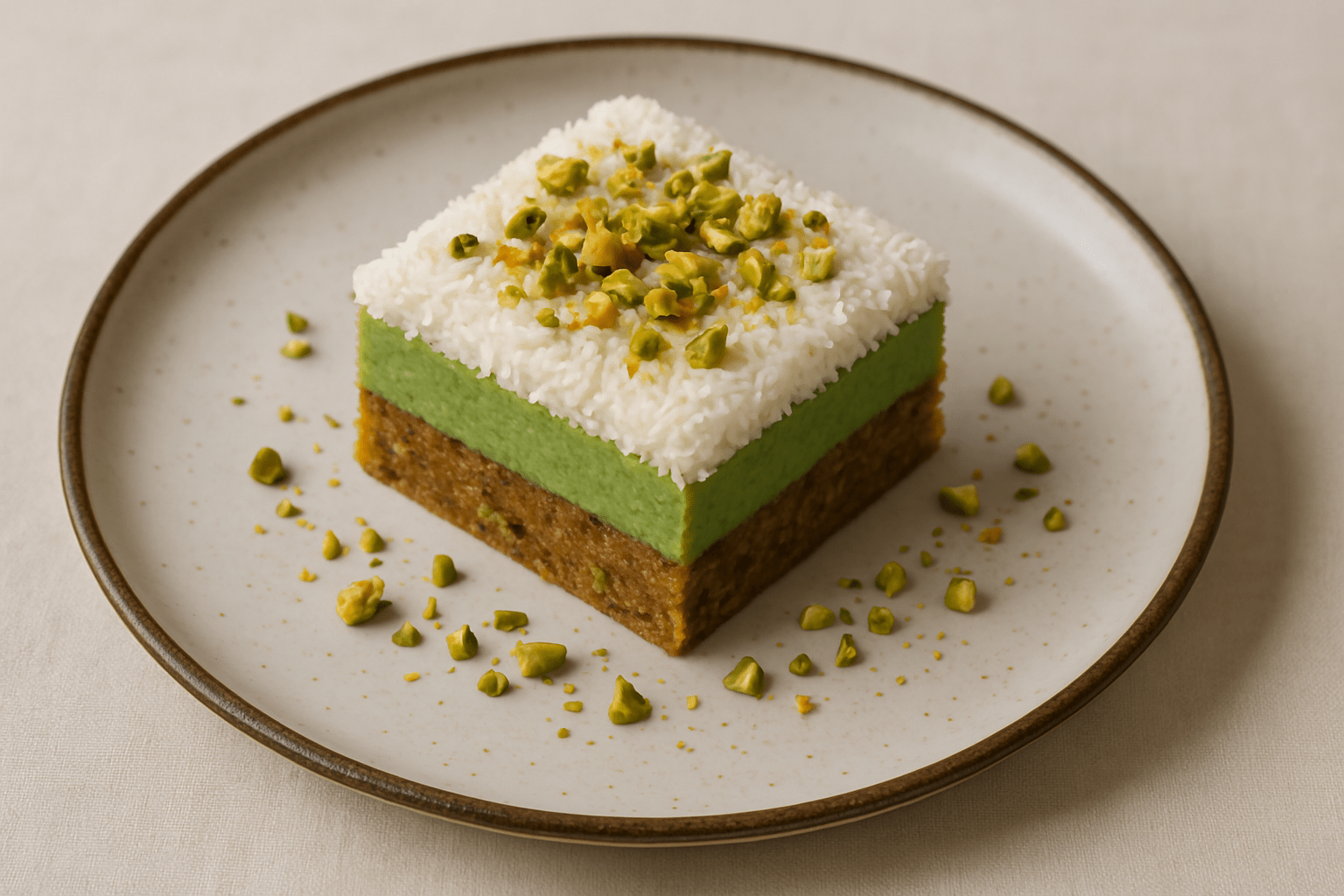 Busted before Home Improvement. Pistachio & Coconut Slice
